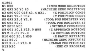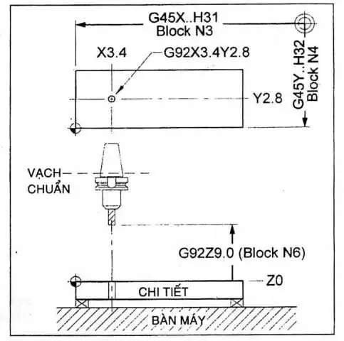 Chương trình này đòi hỏi lệnh bù vị trí G45 hoặc G46 theo các trục X và Y, và lệnh đăng ký vị trí G92 theo các trục XYZ. Mỗi chi tiết phải bắt đầu ở Zero máy (Hình 1).