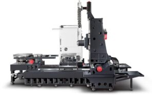- Vít me bi, ray dẫn hướng, box way, bàn máy: Cơ chế di chuyển bệ, bàn máy hay trục quay được gọi là vít me bi (ballscrew). Cơ chế này làm thay đổi chuyển động quay của động cơ truyền động thành chuyển động tuyến tính và bao gồm một trục vít (screw shaft) và ổ trục đỡ. Khi trục quay, một ổ trục gắn lần theo các đường rãnh hình xoắn ốc trong trục và sản sinh ra một chuyển động tuyến tính chính xác làm quay bàn làm việc ở dưới trục chính hay giá đỡ trục chính. Những vít me bi này được bắt vào bệ máy với ổ trục gắn ghép vào bàn làm việc hay giá đỡ trục chính được dẫn hướng bởi các ray dẫn hướng (linenear rails). Bàn máy cũng có thể được dẫn truyền bởi cơ cấu Box way.