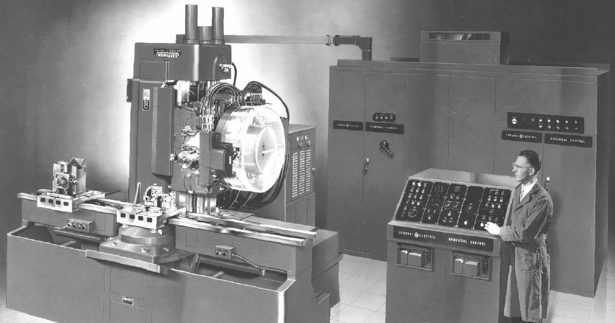 Thiết kế máy CNC hiện đại bắt nguồn từ tác phẩm của John T. Parsons cuối những năm 1940 và đầu những năm 1950. Sau chiến tranh thế giới thứ 2, Parsons tham gia sản xuất cánh máy bay trực thăng, một công việc đòi hỏi phải gia công chính xác các hình dạng phức tạp. Parsons sớm nhận ra rằng bằng cách sử dụng máy tính IBM thời kì đầu, ông đã có thể tạo ra những thanh dẫn đường mức chính xác hơn rất nhiều khi sử dụng các phép tính bằng tay và sơ đồ. Dựa trên kinh nghiệm này, ông đã giành được hợp đồng phát triển một “máy cắt đường mức tự động”cho không quân để tạo mặt cong cho cánh máy bay. Sử dụng một đầu đọc thẻ máy tính và các bộ điều khiển động cơ trợ động (servo motor). Chiếc máy được chế tạo cực kì lớn, phức tạp và đắt đỏ. Mặc dù vậy, nó làm việc một cách tự động và gia công các mặt cong với độ chính xác cao giúp đáp ứng nhu cầu của ngành công nghiệp máy bay.